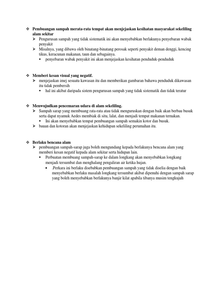Malahan Kementerian Perumahan Dan Kerajaan Tempatan menyatakan Pihak Berkuasa Tempatan PBT terpaksa membelanjakan di antara 40 hingga 70 hasil cukai taksiran tahunan bagi tujuan mengutip dan melupuskan sampah. Muat turun halaman 1-50 di AnyFlip. Sesetengah kumpulan pendatang asing ini pula membuka kawasan hutan sebagai kawasan perumahan mereka.