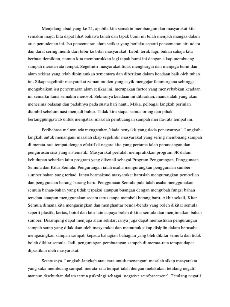 Karangan Bm Langkah Menangani Masalah Buang Sampah Merata Rata Pdf